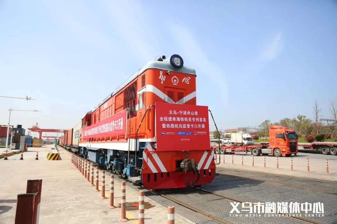 3月24日,“义乌-宁波”舟山港全程提单海铁转关专列,成功首发。