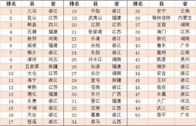 根据网购密度,即平均每万人中的网购消费者数量,阿里研究院分析形成“2015年中国大众网购消费最活跃的50个县”排行榜,其中,排名前十的依次是义乌、昆山、郫县、石狮、新郑、闽侯、桐乡、清河、五家渠和太仓。
