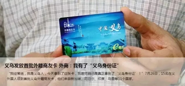 义乌发放首批外籍商友卡
