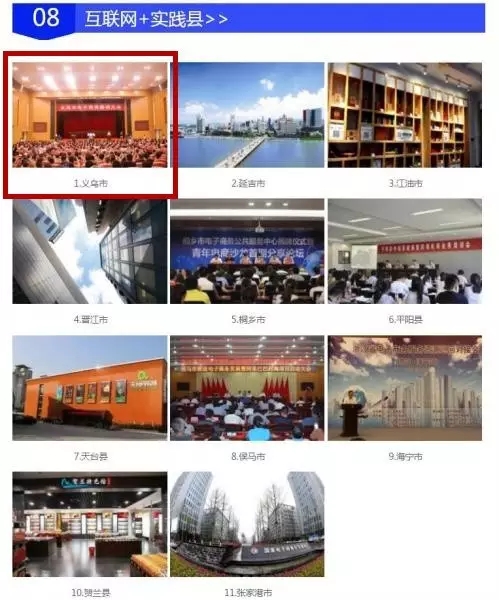 义乌位居“互联网+实践县”榜单之首。来源新华网