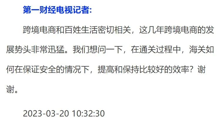 会上,有记者针对跨境电商提出问题,“在通关过程中,海关如何在保证安全的情况下,提高和保持比较好的效率?”