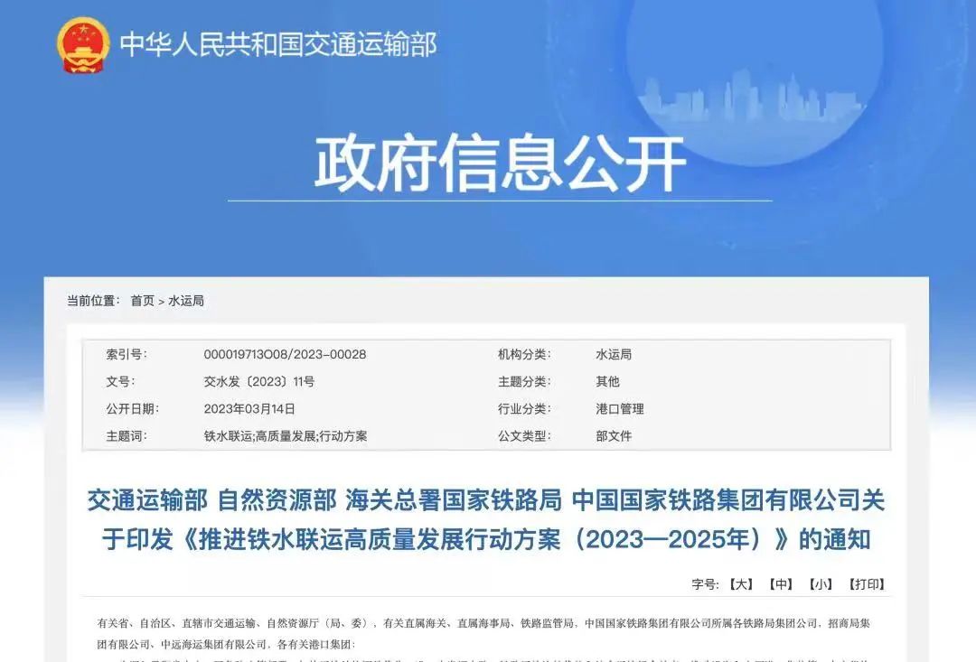 近日,交通运输部、自然资源部、海关总署、国家铁路局、国铁集团联合印发《推进铁水联运高质量发展行动方案(2023—2025年)》,聚焦提升设施联通水平、提升联运畅通水平等4个方面共13项任务,加快运输结构调整优化,推动交通运输绿色低碳发展。