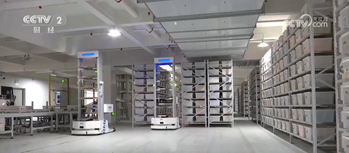 除了在前端市场和产品上发力,玩具企业也在后端供应链管理上“苦练内功”。眼前看到的这个双层智能仓库,储存了8万种积木颗粒,20台机器人正根据编号将每颗积木提取进行自动分拣包装。负责人称,今年以来订单不断增长,每天平均有上千万颗积木颗粒被生产下线,这对存取和配送提出了更高要求。