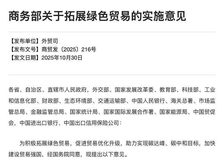 媒体报道商务部发布绿色贸易新规,中国外贸突围新赛道
